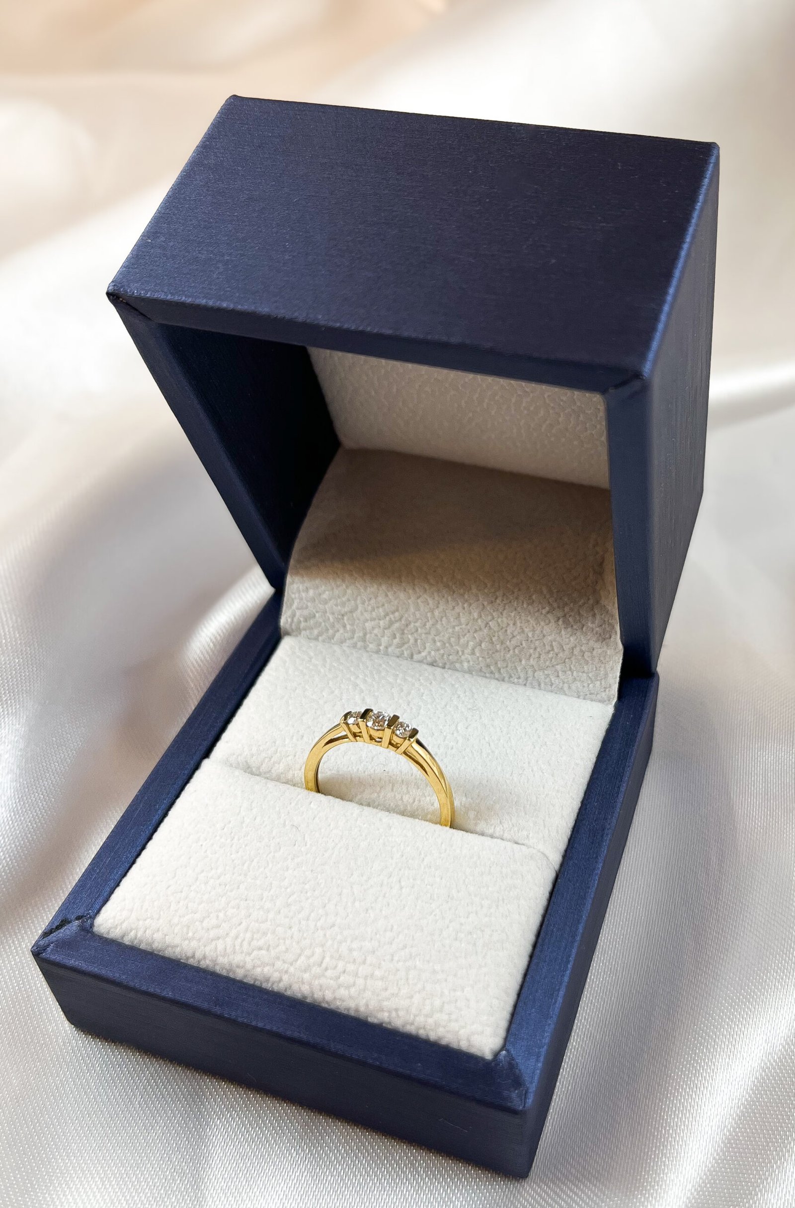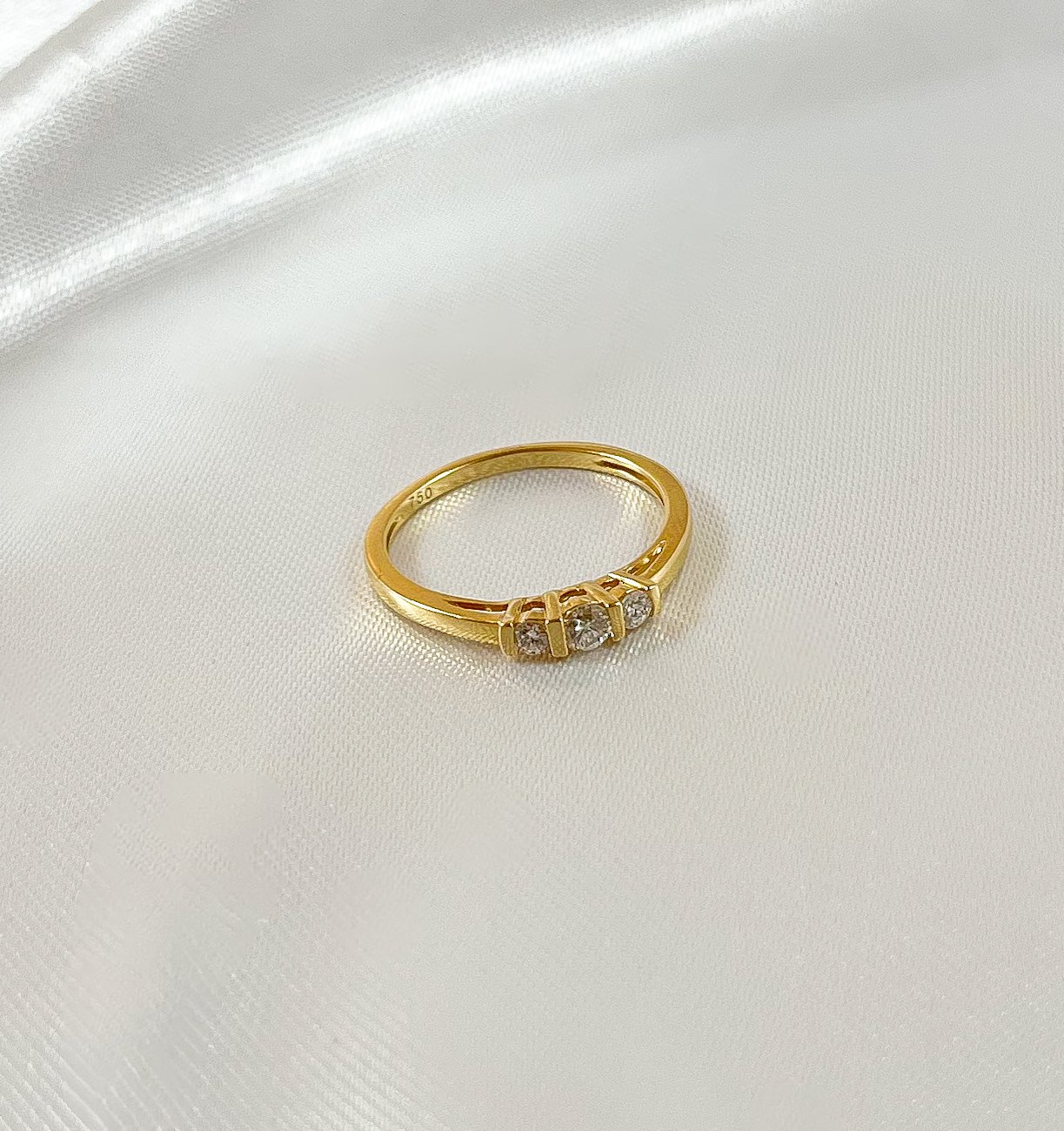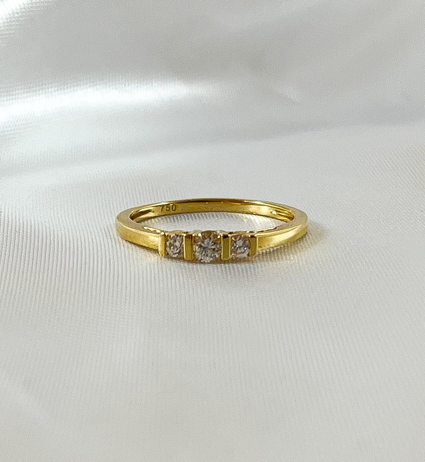 Un símbolo de pasado, presente y futuro. Este atemporal Tricillo de Oro Amarillo presenta tres Diamantes engastados en línea. Su diseño sencillo y pulido maximiza el brillo de cada piedra, creando una joya de elegancia minimalista.